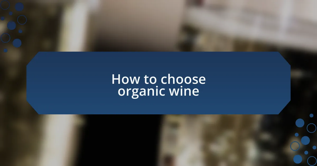 Choosing organic wine can feel overwhelming at first, but it’s a journey worth embarking on. I remember standing in a wine shop, faced with rows of bottles, unsure which organic label to trust. My advice is to look for certifications like the USDA Organic seal, which ensures that the wine is produced without synthetic chemicals. It felt reassuring to know that I was making a more responsible choice just by reading the label.