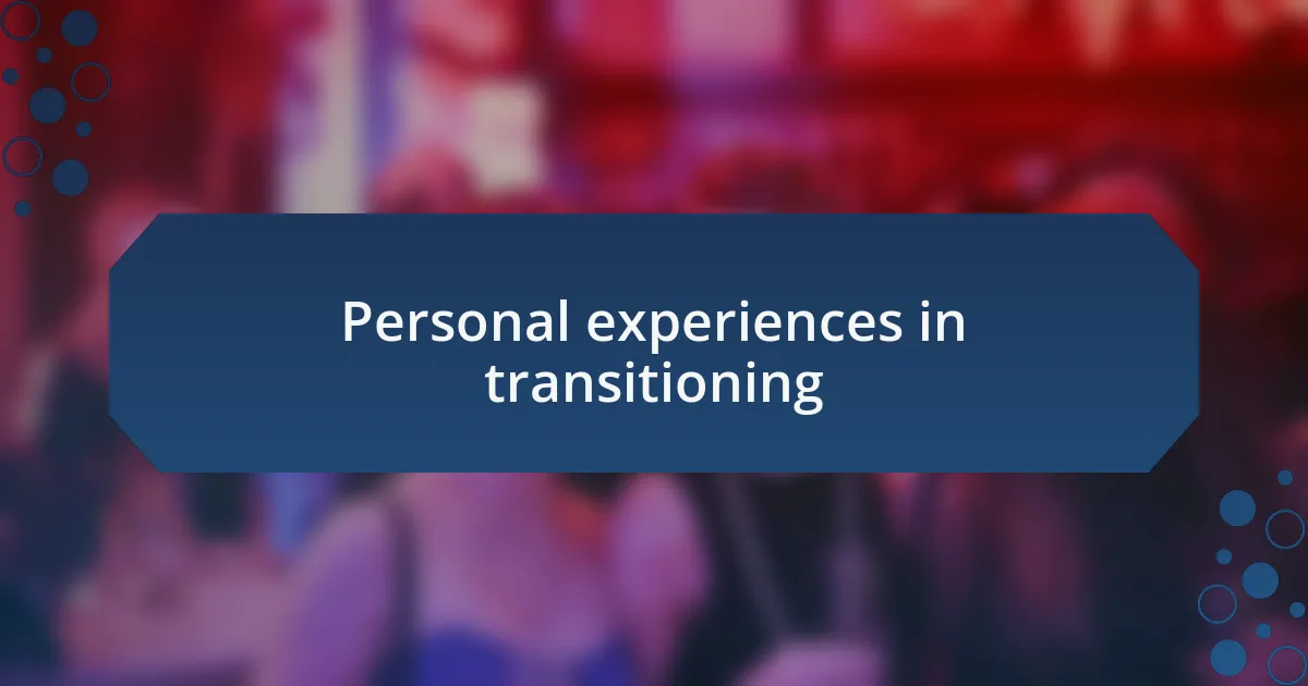 Personal experiences in transitioning