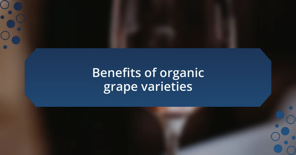 One of the most significant benefits I’ve noticed is the enhanced flavor profile that comes with organic grapes. Unlike their conventional counterparts, these grapes thrive without synthetic fertilizers and pesticides, allowing their true characteristics to shine through. When I first tasted a wine made from such a grape, it felt like a direct connection to the land—a pure, unfiltered expression of nature. Have you ever tasted a wine that made you feel that way?